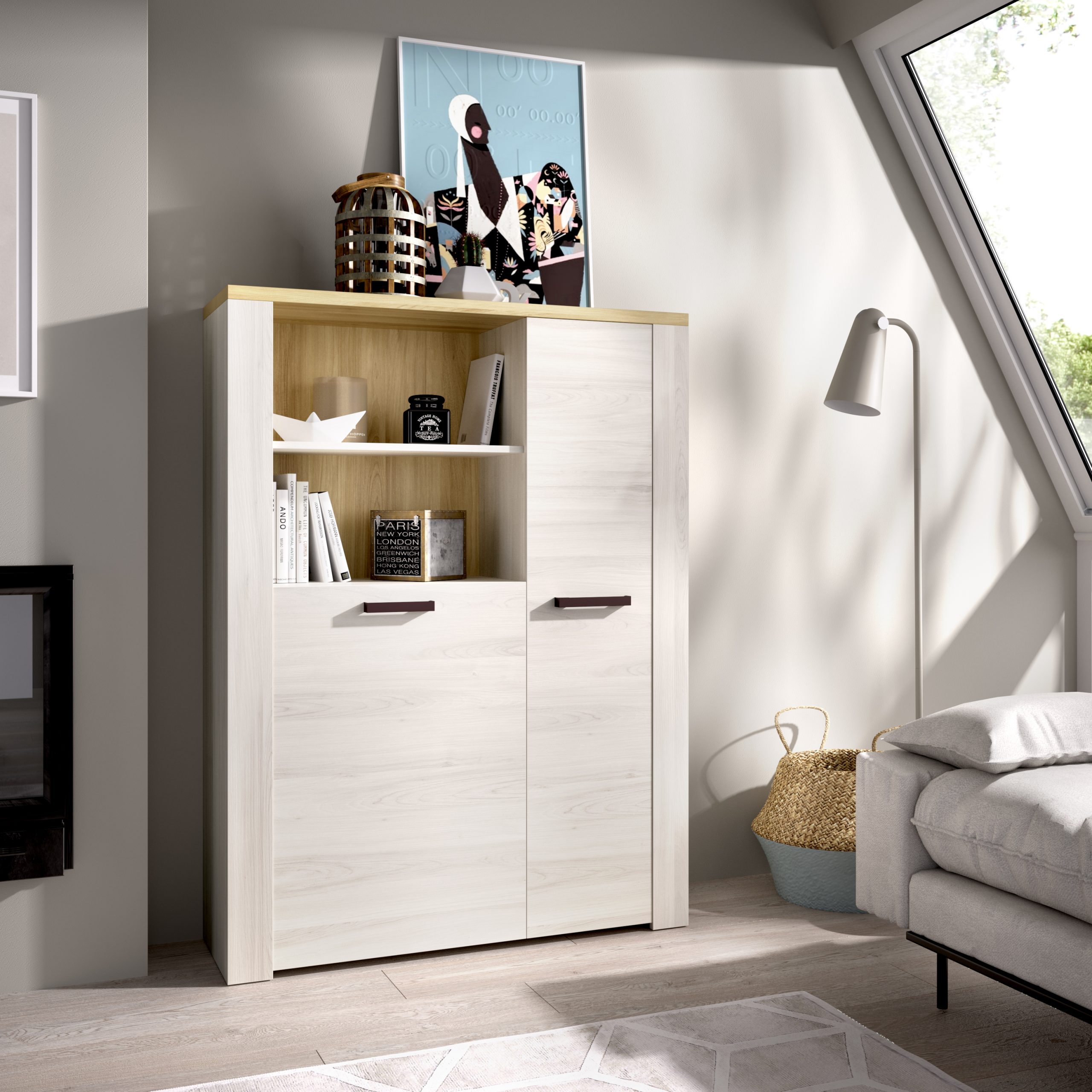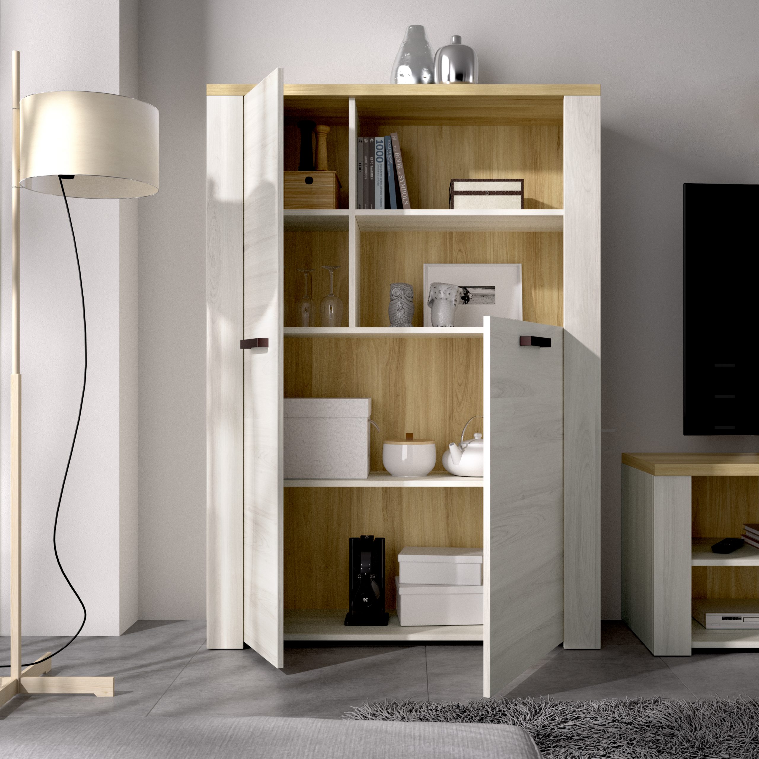 Aparador, bodeguero muy funcional que dispone de 2 puertas, 5 estantes y sobre todo mucho espacio para almacenar tus cosas pudiendo tener así tu casa siempre en orden.