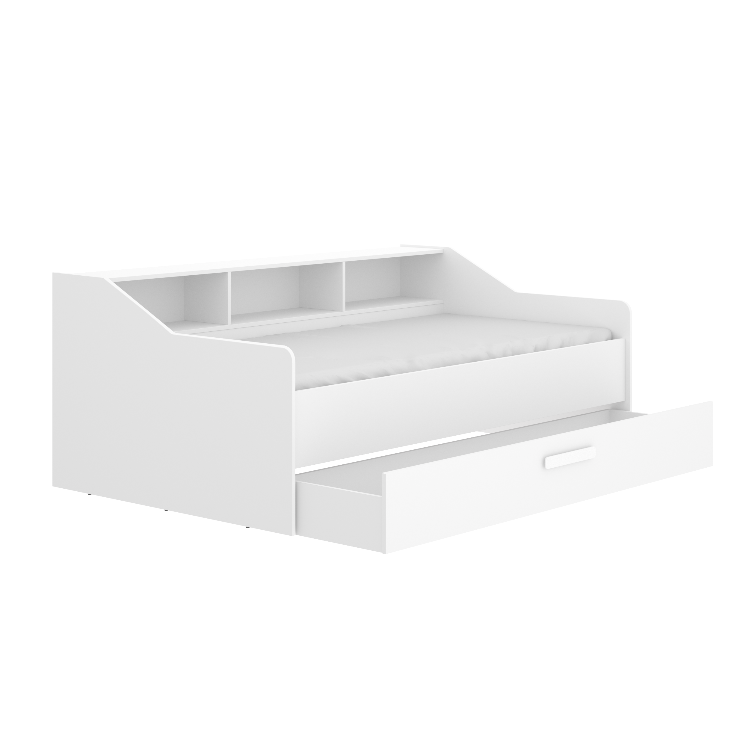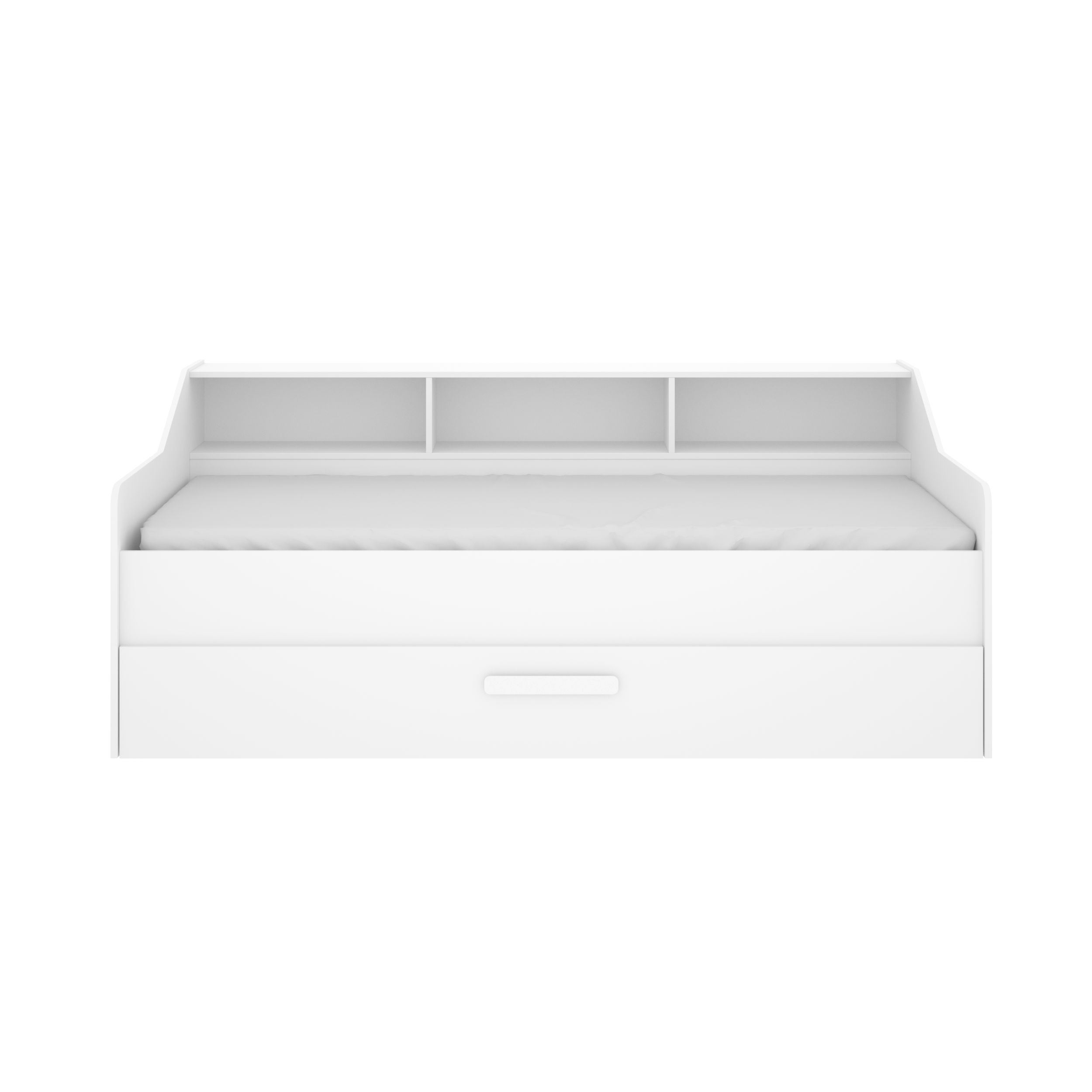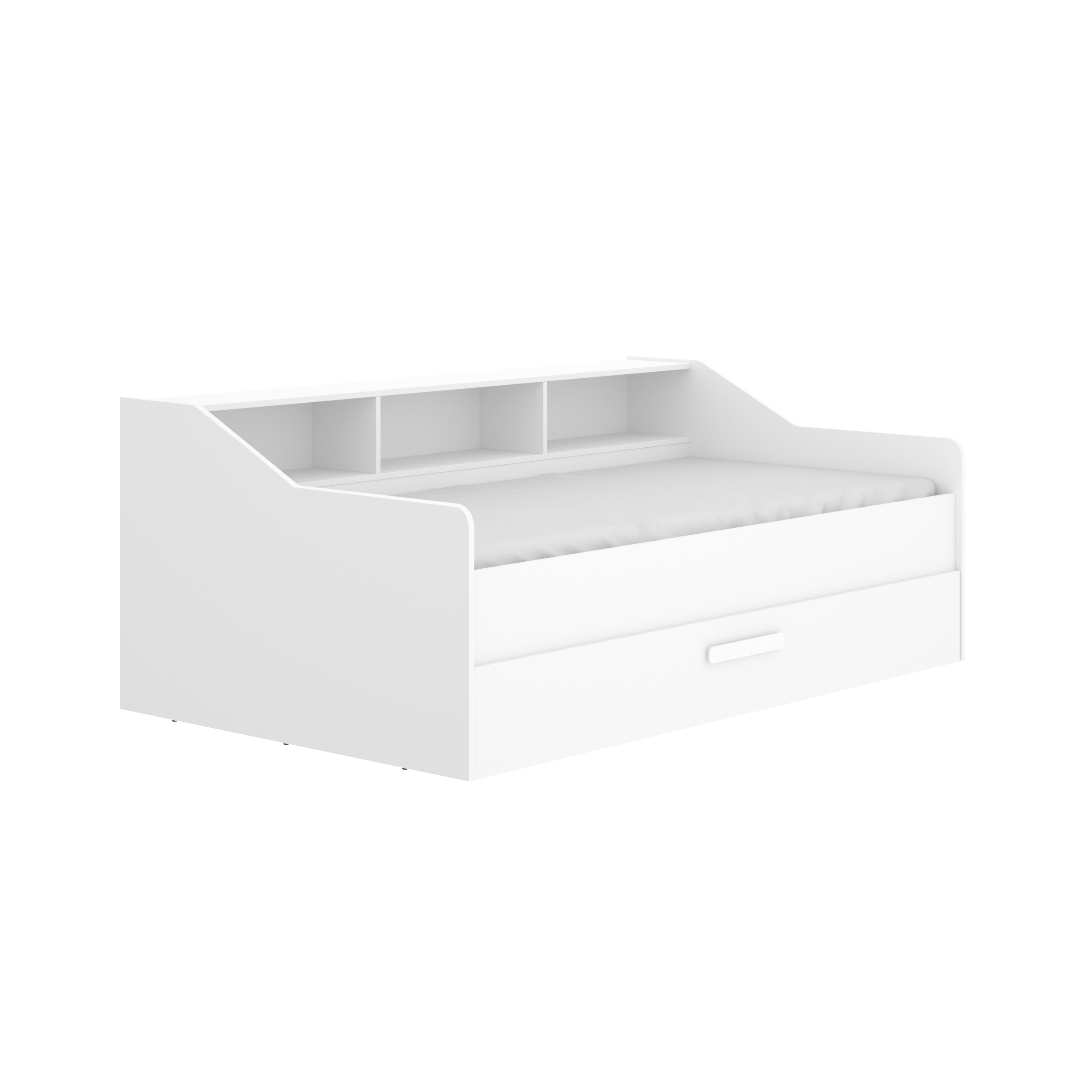 La cama nido Drag es práctica, tiene un diseño moderno y unos materiales de calidad. Así es, este modelo está fabricado en melamina de buena calidad, lo que nos asegura una gran resistencia al paso del tiempo. En la cama encontramos varias zonas: 1 cajón inferior con gran espacio de almacenaje, 1 espacio para 1 colchón de 90 x 190 cm, 3 huecos de almacenaje sobre esta y 1 repisa superior que pone la guinda a este fantástico mueble. De esta manera, estamos ante un mueble muy estético, funcional y fácil de montar que combinará sin problema con el resto del mobiliario del dormitorio. Además de cama, podrás utilizarla como lugar donde almacenar prendas de ropa, así como otros elementos tanto decorativos como funcionales. Ideal para dormitorios de tamaño pequeño y mediano, esta cama nido Drag te encantará. ¡Hazte con la tuya!