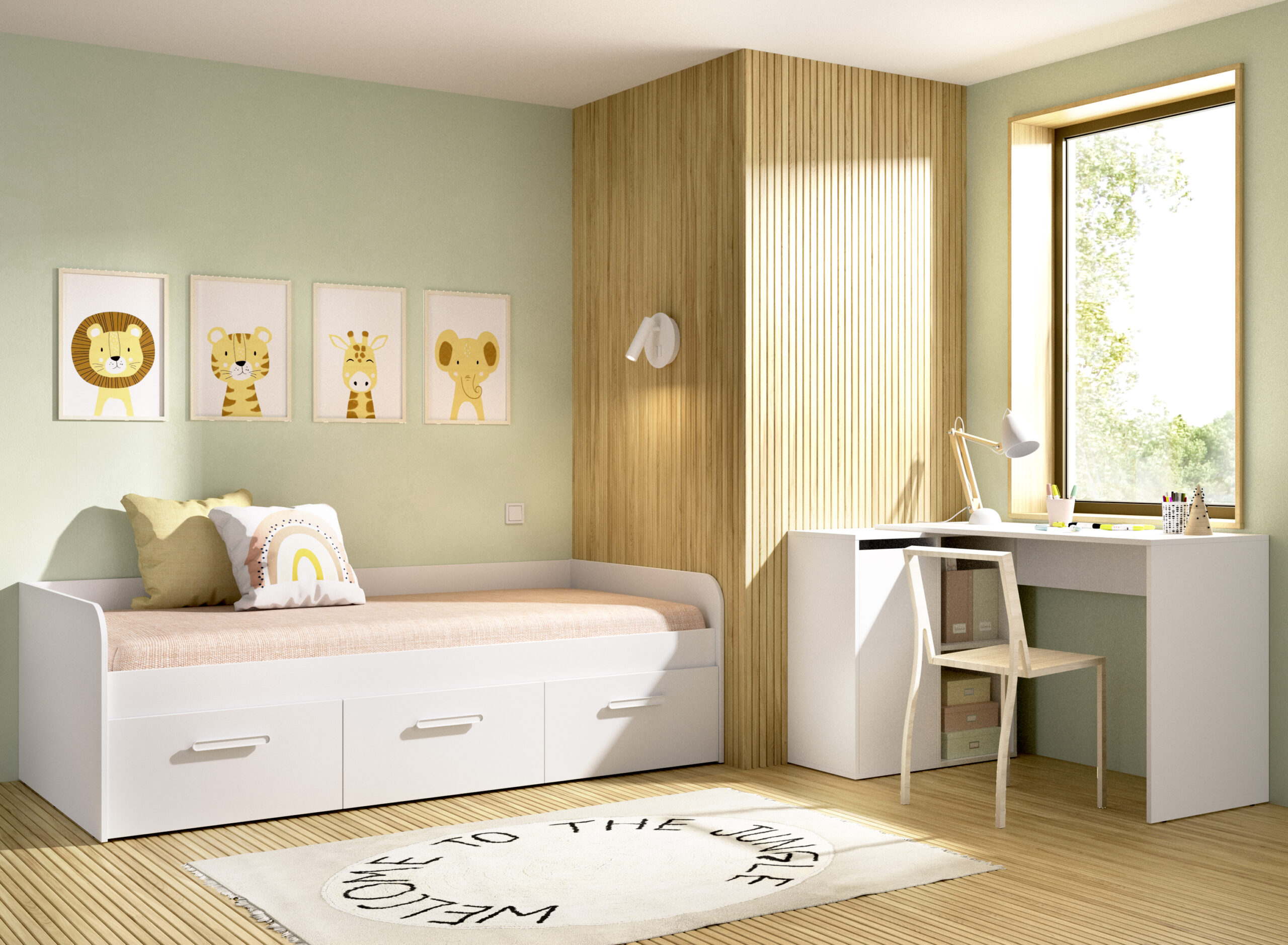 Esta cama nido en particular tiene una estructura sólida y resistente, fabricada en madera de alta calidad y acabada en un elegante color blanco. Los tres cajones incorporados en la parte inferior de la cama proporcionan un amplio espacio de almacenamiento adicional para guardar ropa de cama, juguetes y otros artículos personales.
