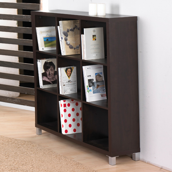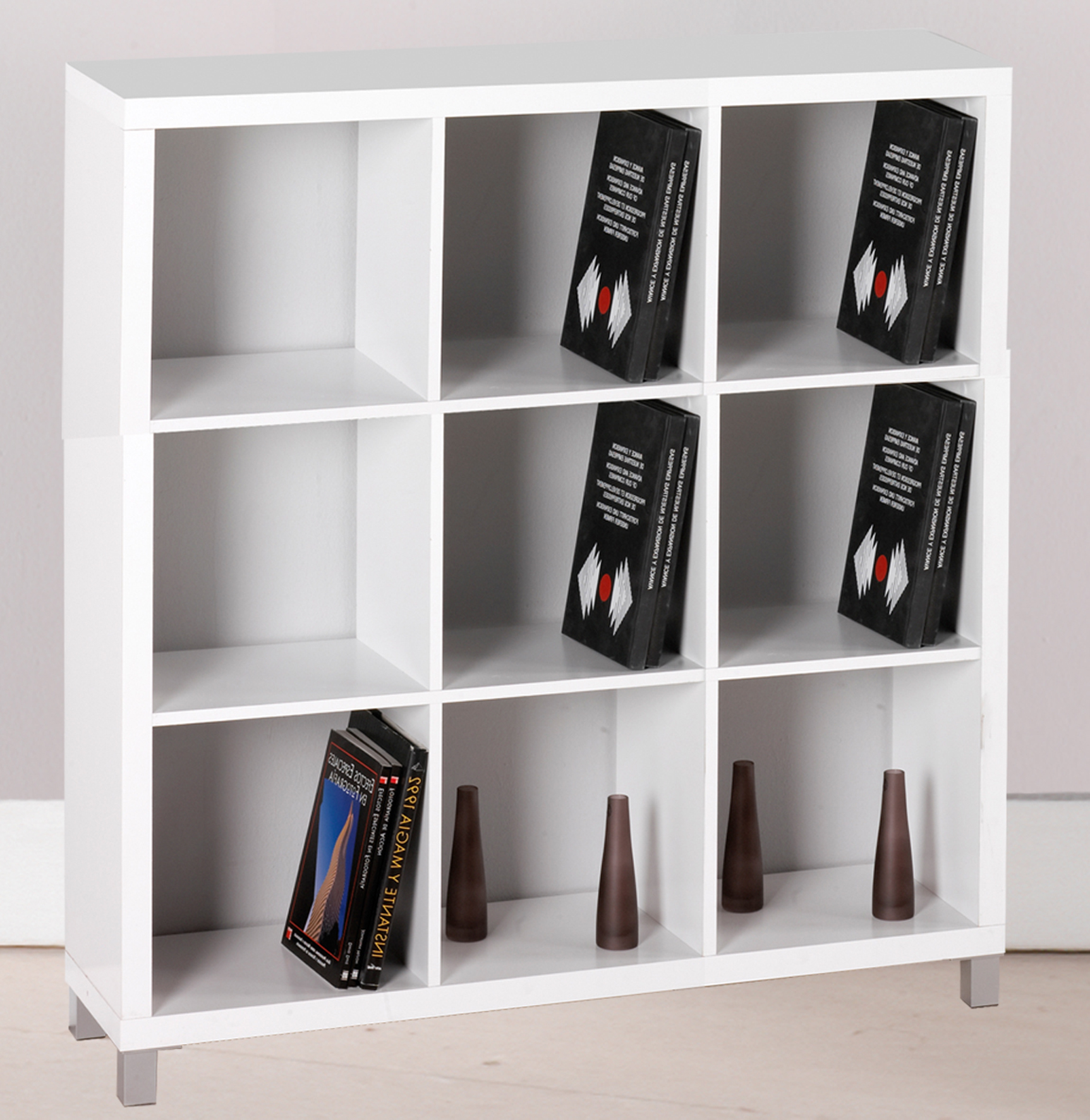 Estantería 3*3: 118 cm de alto x 29 cm de largo x 11a cm de ancho