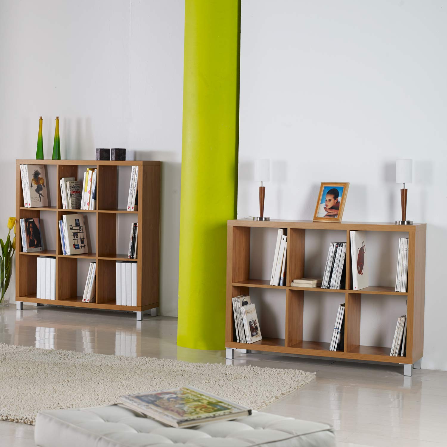 Modernas estanterías de la serie «Kubox» diseñadas para la decoración de habitaciones y principalmente del salón. Fabricadas con madera atamborada de 38 mm de Interior de de MDF 15 mm de Interior y patas de 7 cm de altura. Disponible en 6 tamaños diferentes y 5 colores: blanco, negro, maple, verde naranja y amarillo.
