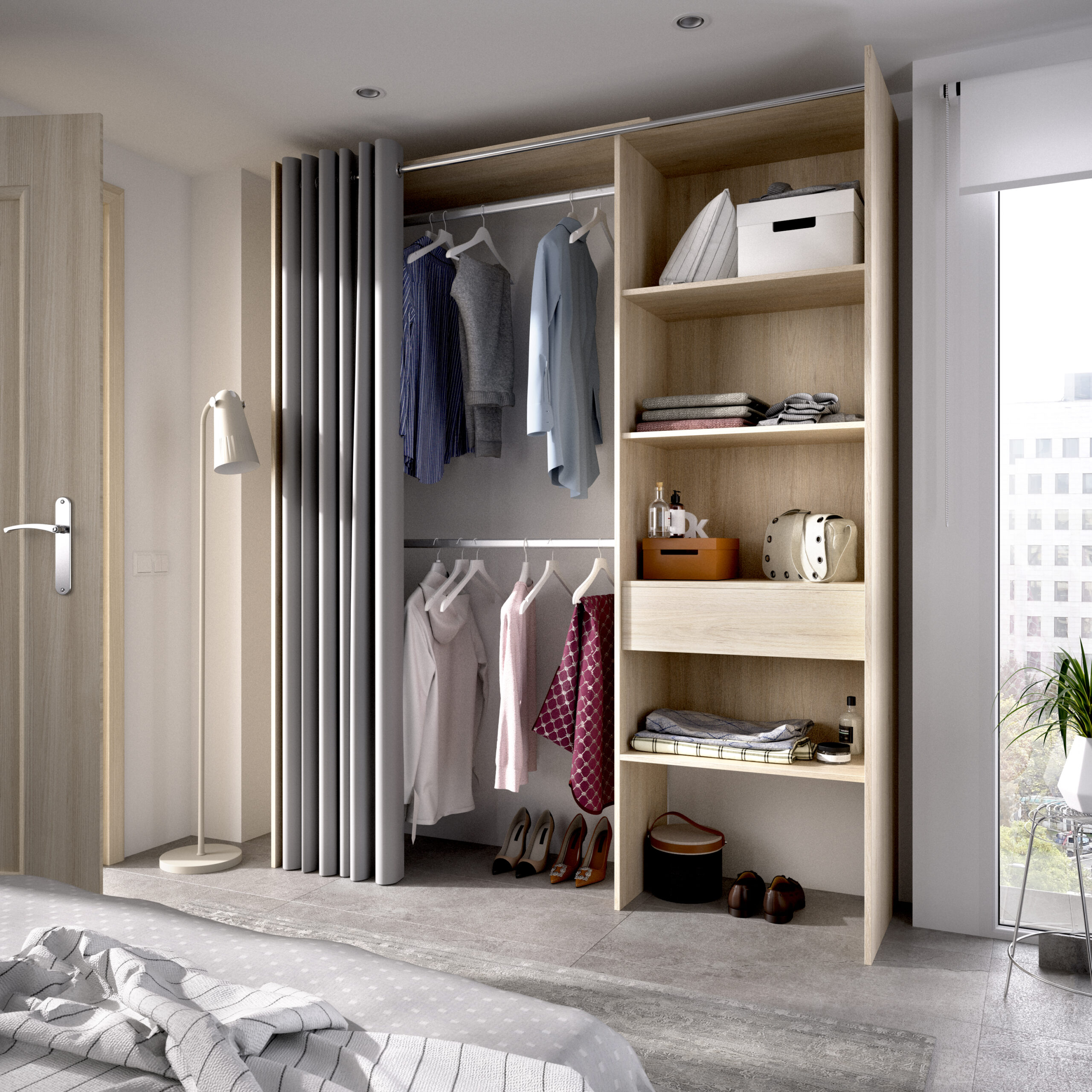 KIT VESTIDOR CON 1 CAJON Y CORTINA NATURAL
