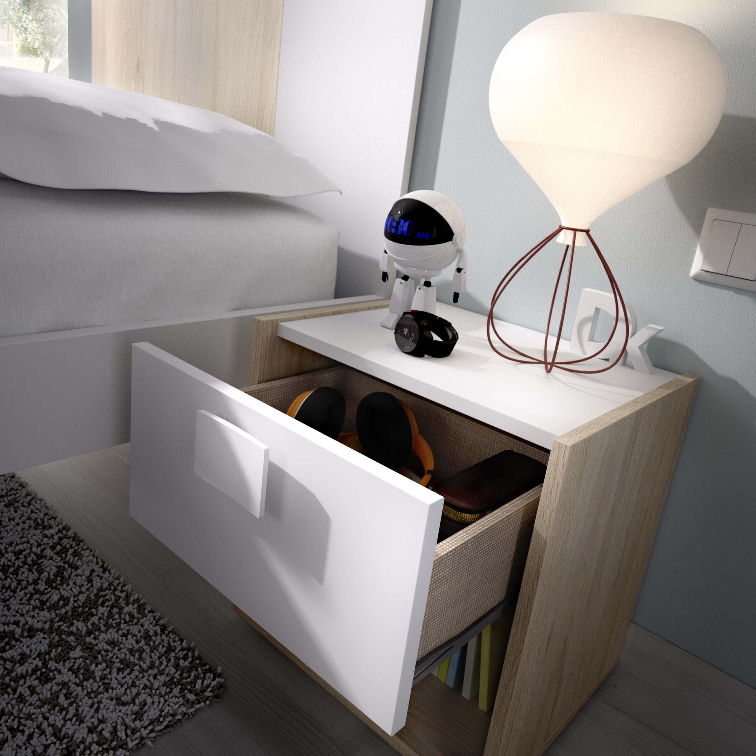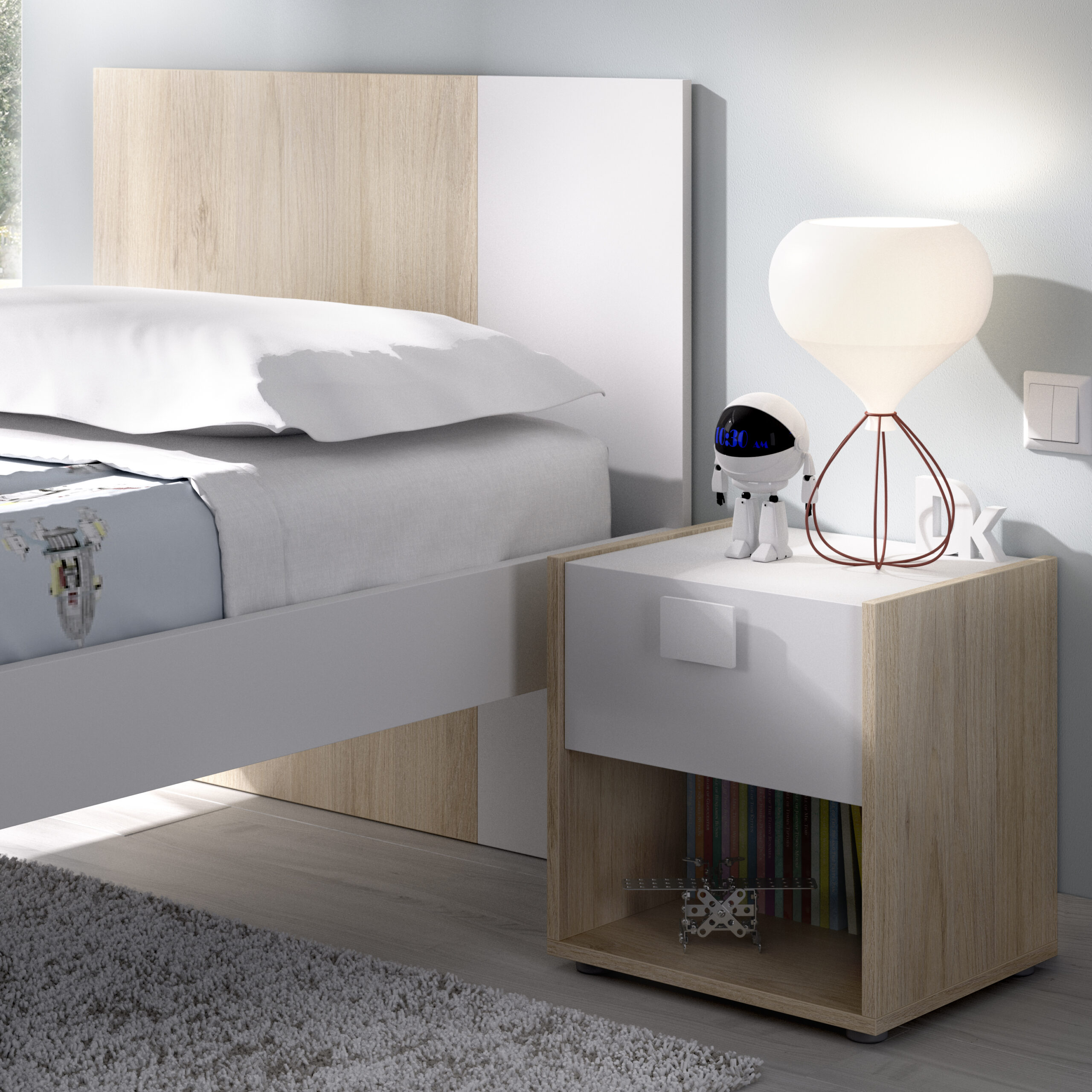 MESITA 1 CAJON DINA COLOR NATURAL / BLANCO