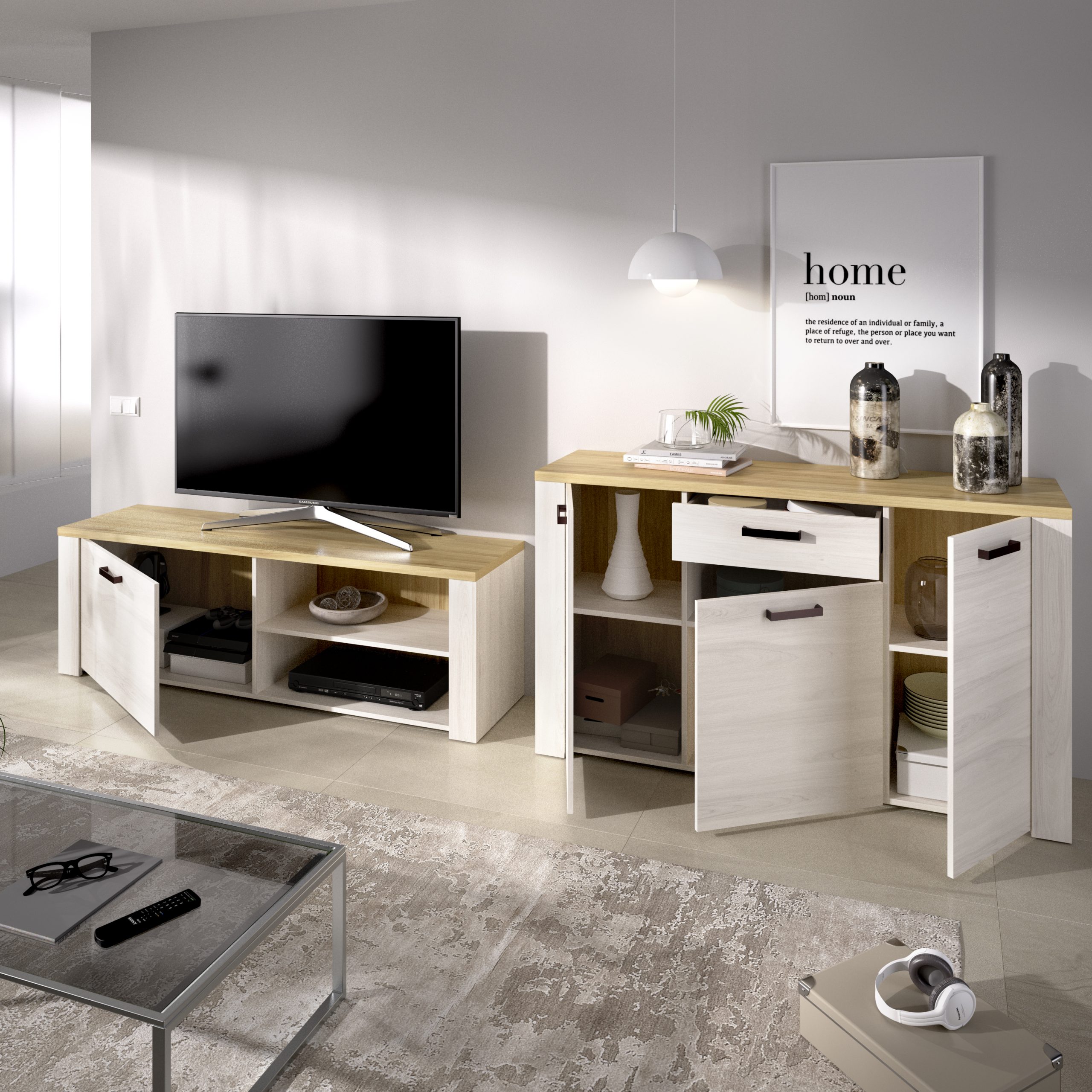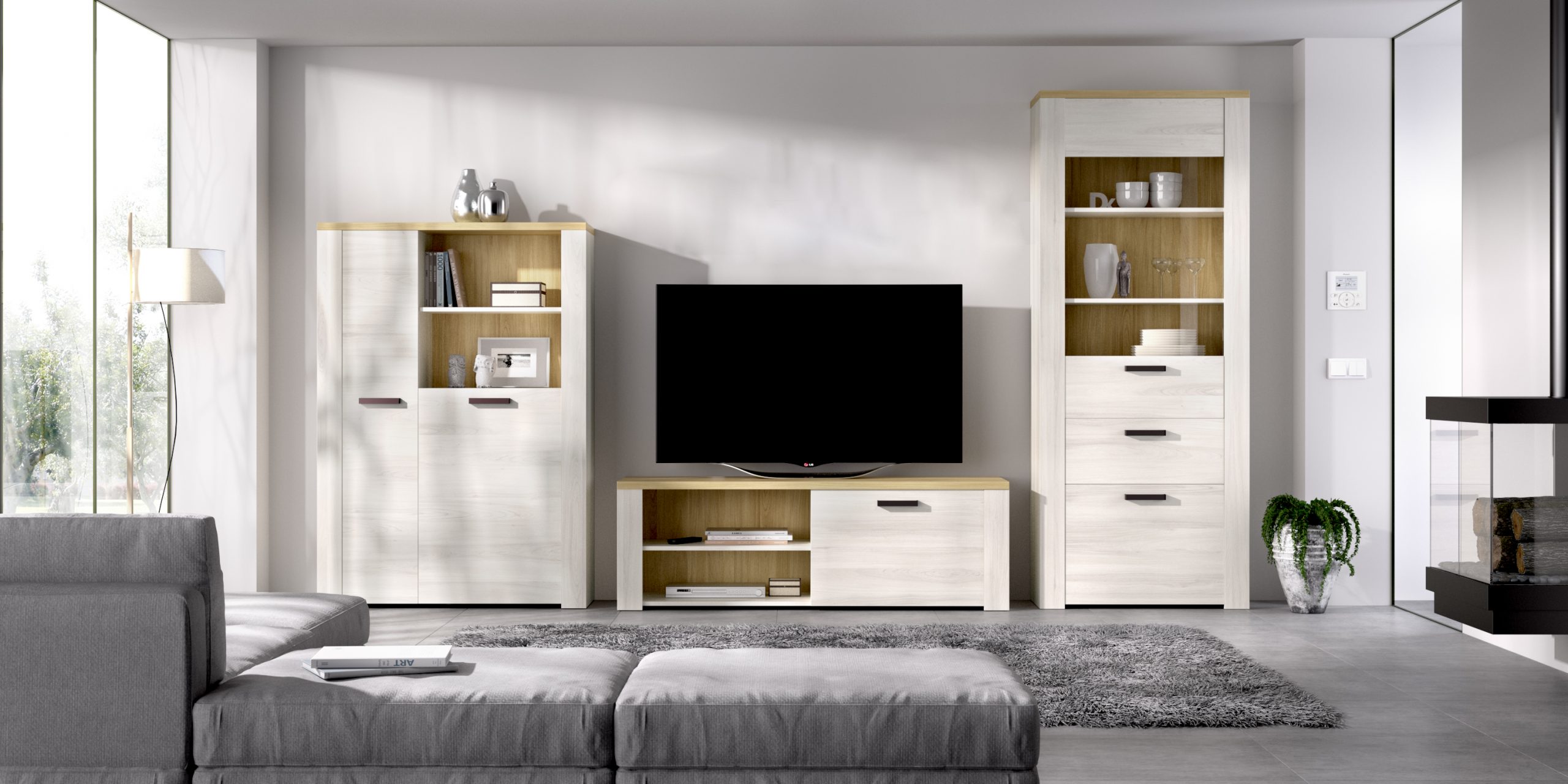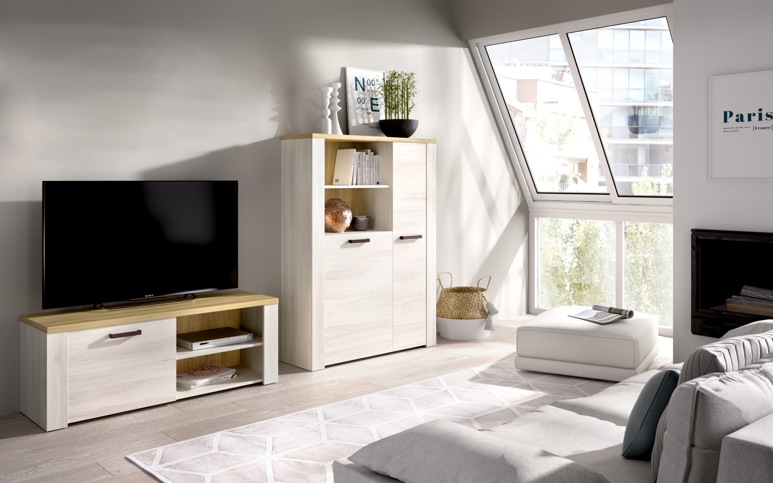 Nuevos muebles de Tv de la serie Sienna. De estilo contemporáneo apto para televisores de hasta 55”, prácticos , funcionales y decorativos para el salón.